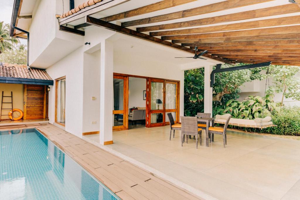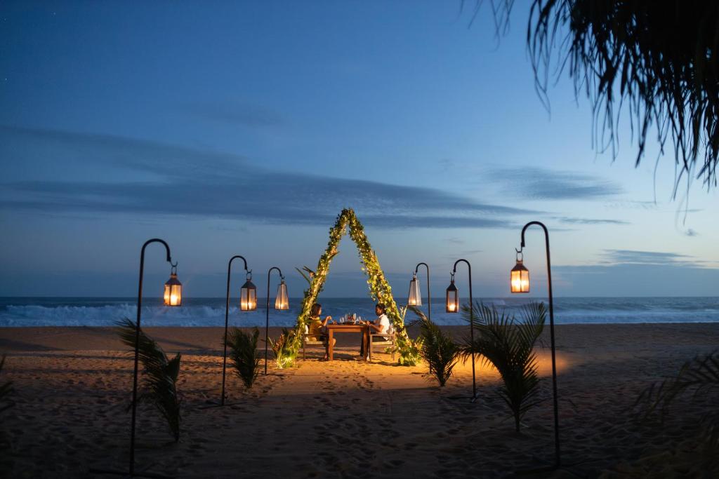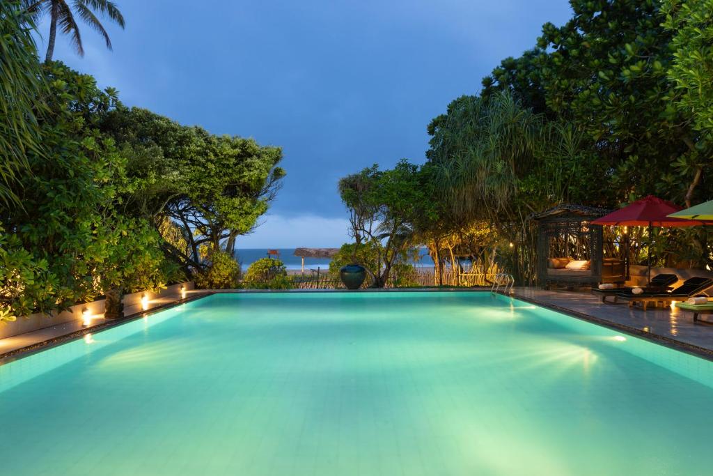 Уютный небольшой бутик-отель Aditya Resort Boutique Hotel 5* с комфортабельными и просторными номерами, каждый из которых оформлен в индивидуальном стиле. Некоторые из них располагают собственным бассейном. Отель находится непосредственно на берегу Индийского океана, в курортном районе Галле. Открыт в 2006 году. На территории курорта есть уютный сад с шезлогами и гамаками для отдыха и открытый бассейн. В спа-салоне отеля проводят аювердические спа-процедуры, а в ресторане сервируют блюда интернациональной кухни и свежие морепродукты. Подходит для спокойного отдыха.