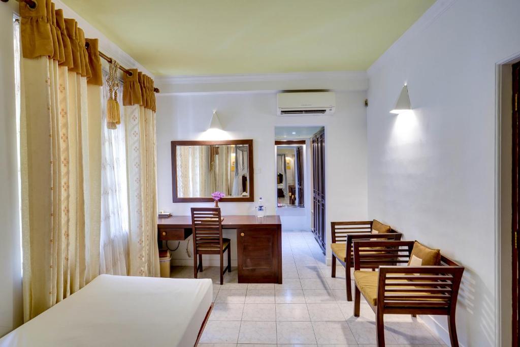 Индивидуальный кондиционер, потолочный вентилятор, ЖК-телевизор, спутниковое ТВ, Wi-Fi (бесплатно), сейф, IDD-телефон, мини-холодильник (по запросу), ванная комната, фен, банный халат, балкон/ терраса, room service.Адрес