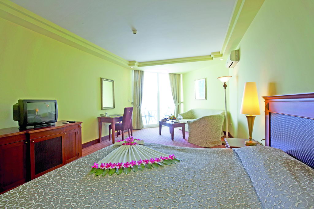 Индивидуальный кондиционер (бесплатно), сейф (платно), телефон, телевизор, спутниковое ТВ, мини-бар бесплатно (вода — ежедневно), душ (ванна только в номерах главного здания), фен, балкон (кроме club standart и anex здания). Уборка номера: ежедневно, смена белья: 3 раза в неделю.- ванна/душ