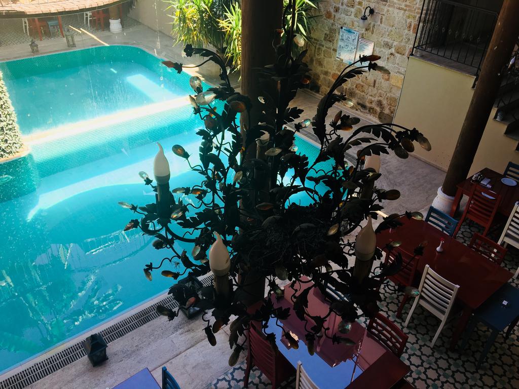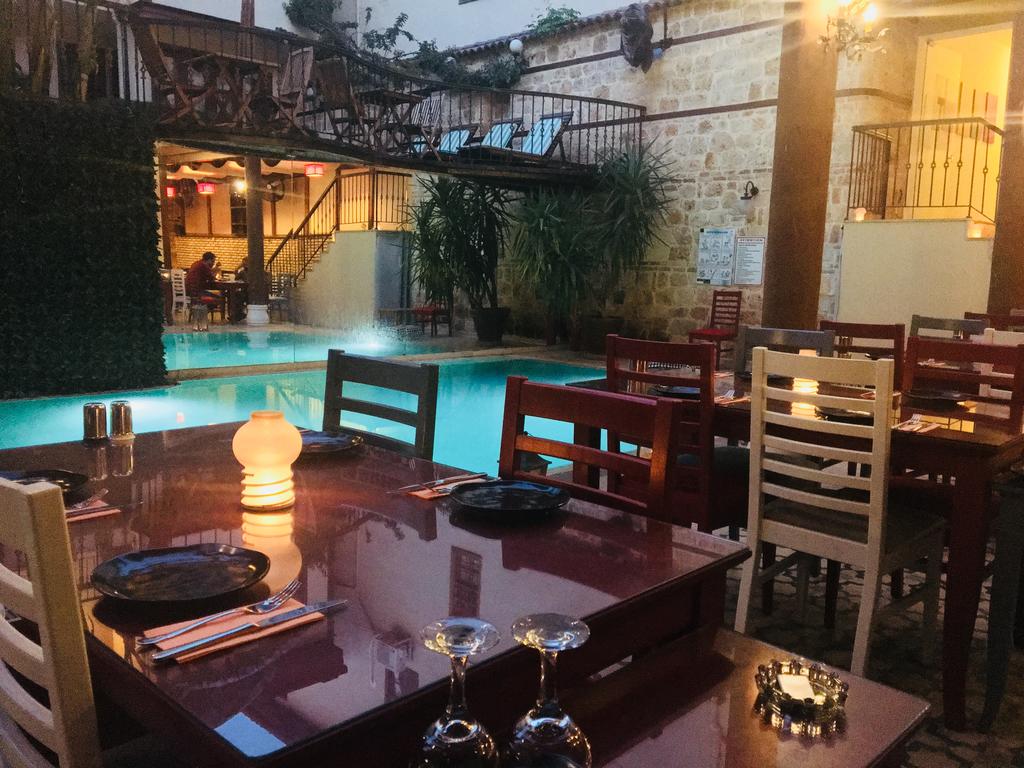 Гости могут насладиться трапезой как в помещении ресторана, так и на свежем воздухе во внутреннем дворике. В меню представлены местные блюда турецкой кухни и классические интернациональные кушанья. Обслуживание номеров производится круглосуточно.- ресторан
