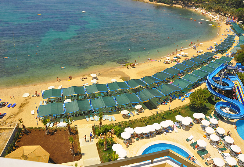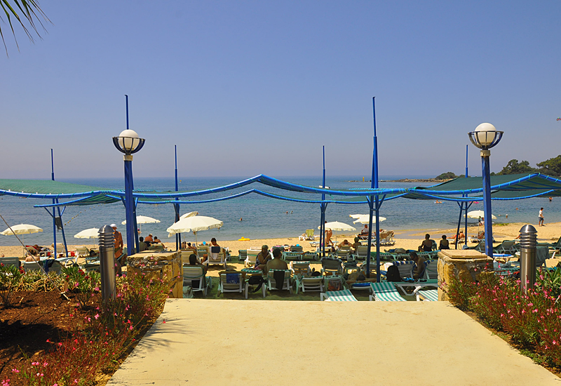 Протяженность пляжа 250 м., ширина 30 м. Бар на пляже (бесплатно).- отель на 1-й пляжной линии