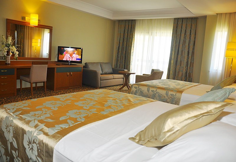 Wi-Fi в лобби и барах (бесплатно), 3 конференц-зала (на 50 - 250 чел), диетическое и вегетарианское меню (бесплатно), 5 баров, 3 ресторана — 1 основной ресторан, 2 ресторана a la carte (рыбный и турецкий, по предварительной записи, за неделю проживания посещение ресторана 1 раз — бесплатно), 3 бассейна — 1 крытый бассейн с подогревом, площадь 60 м2 (работает только в зимний период), 2 открытых бассейна, площадь 1 000 м2 и 360 м2, у бассейна зонтики, шезлонги, матрасы, полотенца (бесплатно), магазины- ресторан