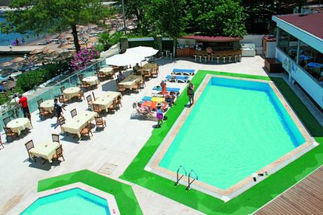 Отель Golmar Beach Hotel 4* расположен на берегу Эгейского моря, в 500 метрах от посёлка Ичмелер, в 7 км от центра города Мармарис.